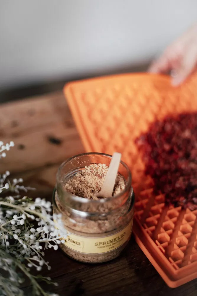 Saupoudrez une petite quantité de Toppers sur la ration habituelle de votre animal pour enrichir son repas.
