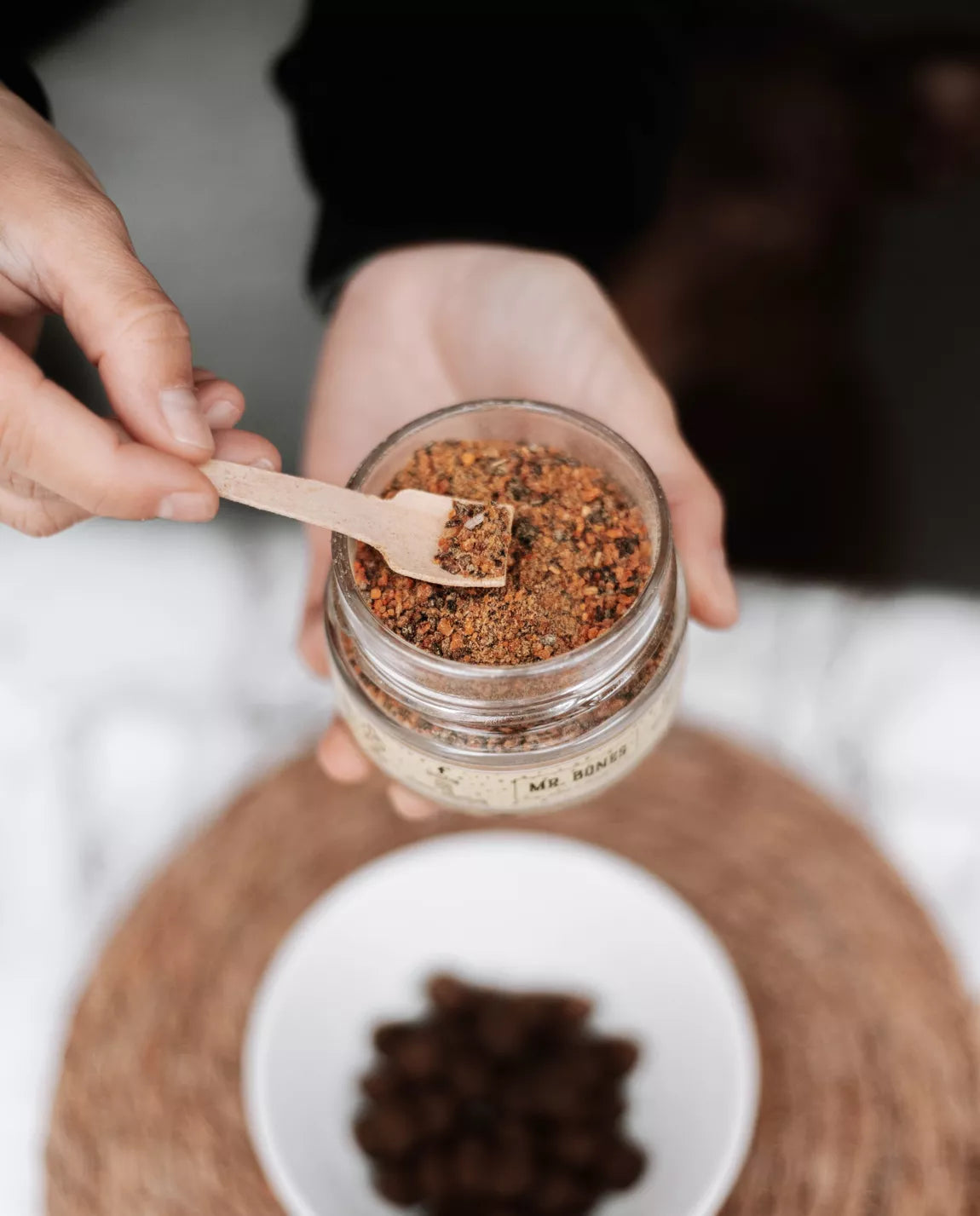 Chaque pot contient une cuillère en bois pour un dosage simple et précis.