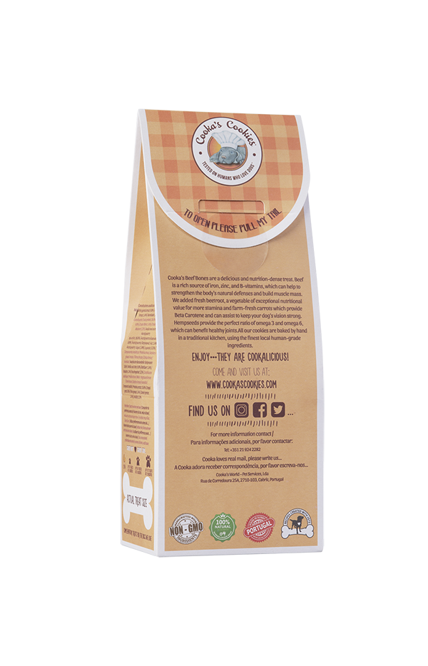 Composition : Farine de riz, bœuf frais (30%), carottes, betterave, saindoux, graines de lin, graines de chanvre, extrait de romarin, persil