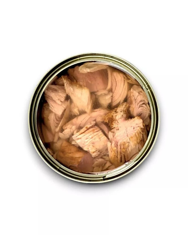 Cet aliment complémentaire humide pour chiens et chats est composé exclusivement de thon et d'eau. Cuisiné naturellement, sans sel, sans additifs ni conservateurs, il conserve sa texture juteuse et une saveur authentique qui ravira même les palais les plus exigeants.