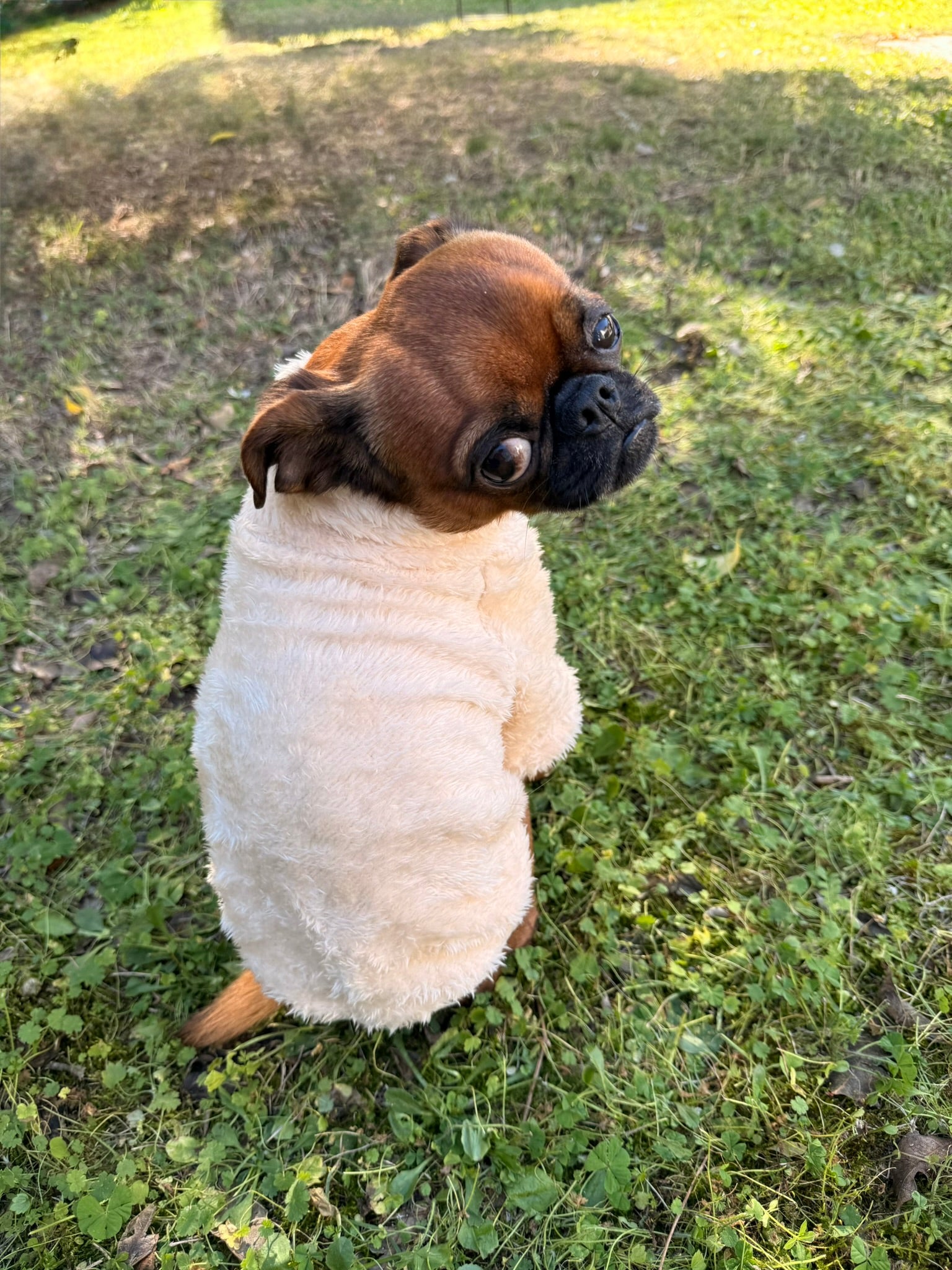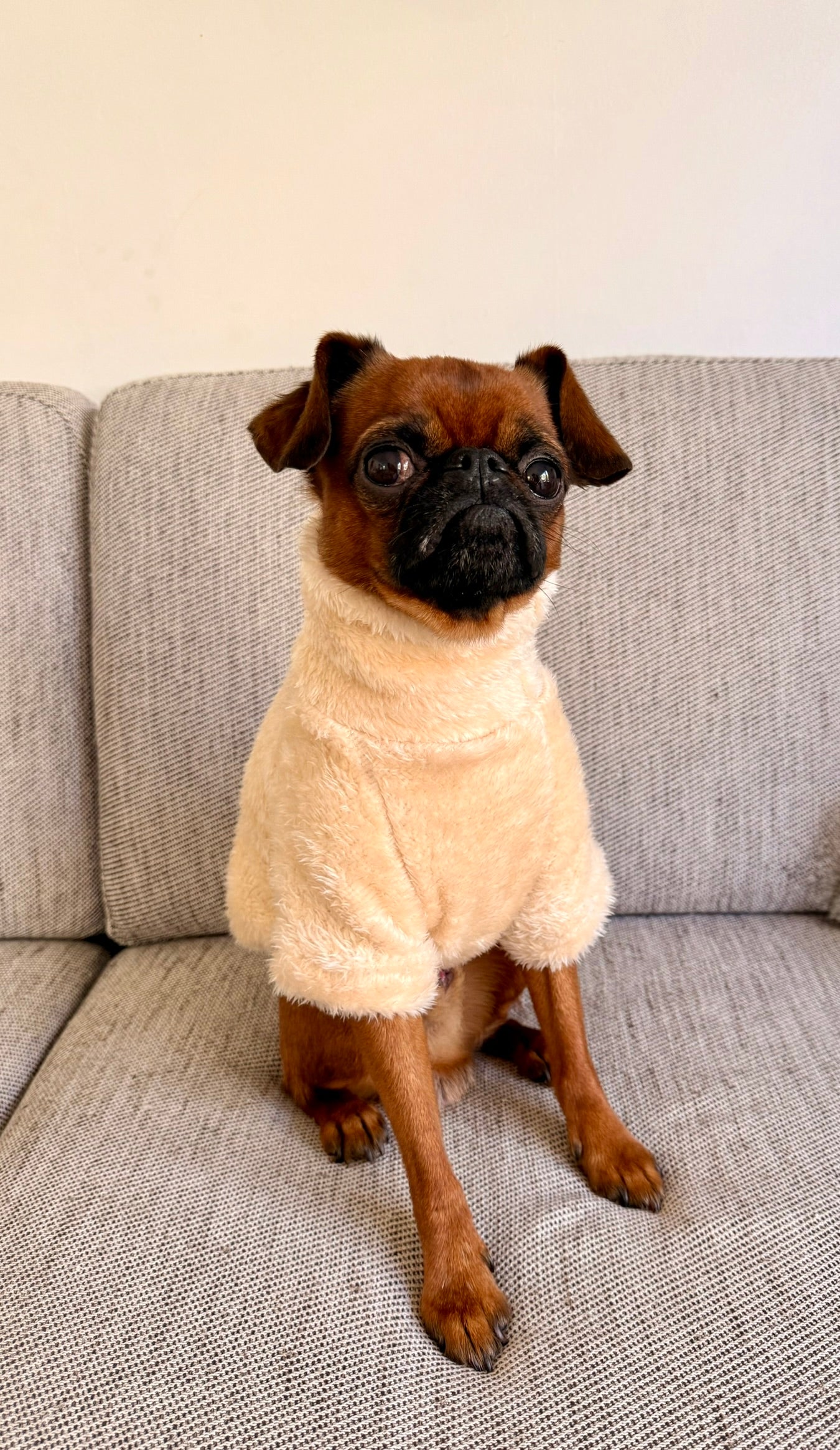 Un pull col montant tout doux pour garder ton bestie au chaud. Matière ultra douce et confortable, il est facile à enfiler par la tête.